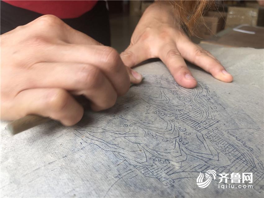 拔丝,把罩好漆的产品覆盖在金银丝上面的漆用特制小刀顺着嵌银图案小心拔去。